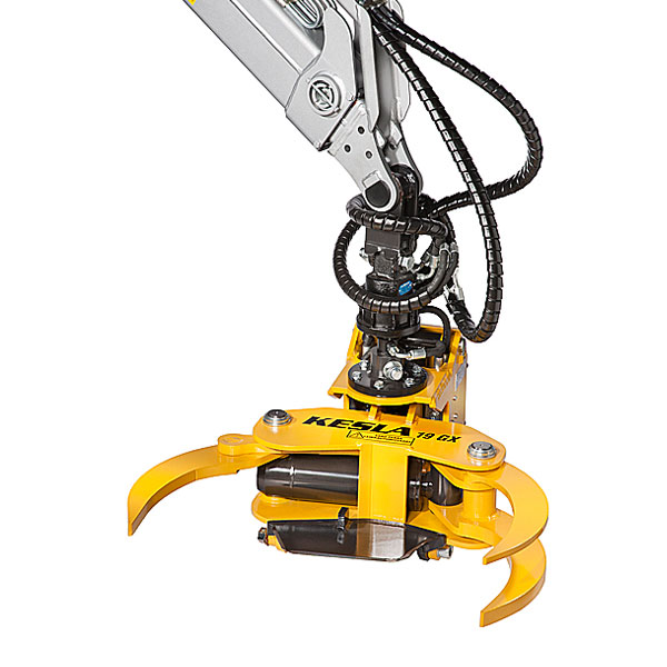 Захватно-срезающее устройство (ЗСУ) предназначено для заготовки и погрузки энергетической древесины. Благодаря простой конструкции и принципу действия оно очень надежно. ЗСУ легко устанавливается, так как не требует дополнительных контуров гидравлики и электрики. В устройстве реализована оригинальная функция TILT, позволяющая оператору решать, в какой момент свалить ствол. Нож ЗСУ складывается, чтобы устройство можно было использовать для погрузки лесоматериалов подобно обычному грейферному захвату. Устройство KESLA 19GX предназначено для работы на манипуляторах KESLA 200 - 500 серий.